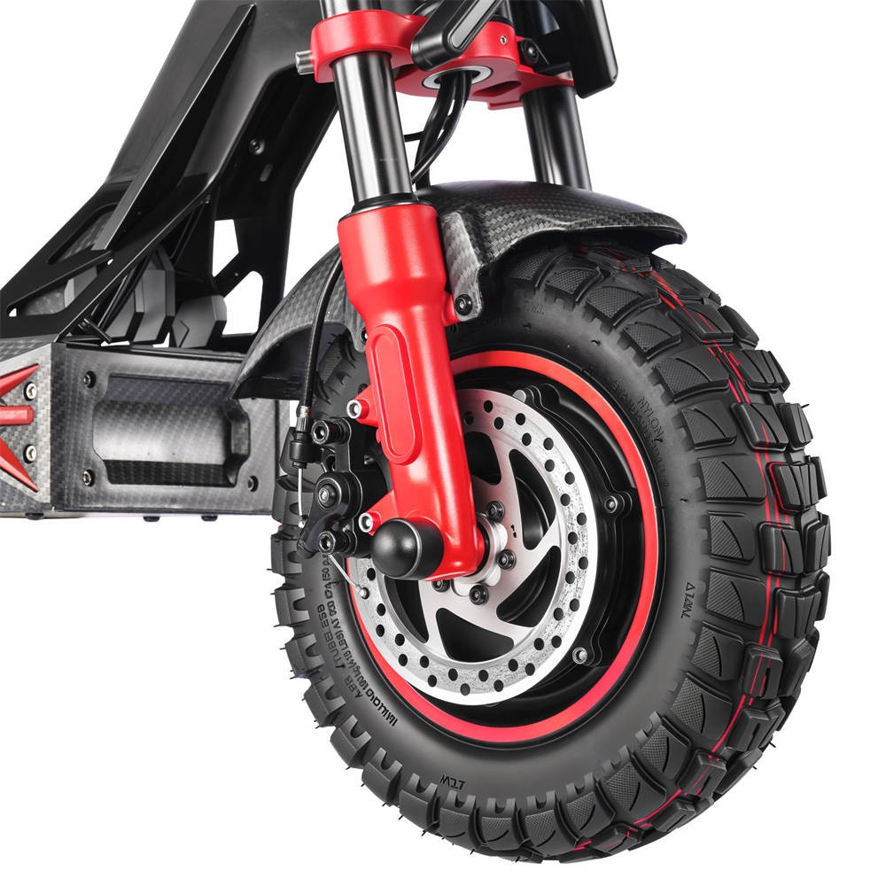 Zadebljane Terenske Gume Opremljen je zadebljanim terenskim vakuumskim gumama od 11 inča, koje nude snažno prianjanje i izvrsnu otpornost na udarce, učinkovito smanjujući rizik od probijanja i održavajući glatku vožnju čak i na neravnom terenu. |